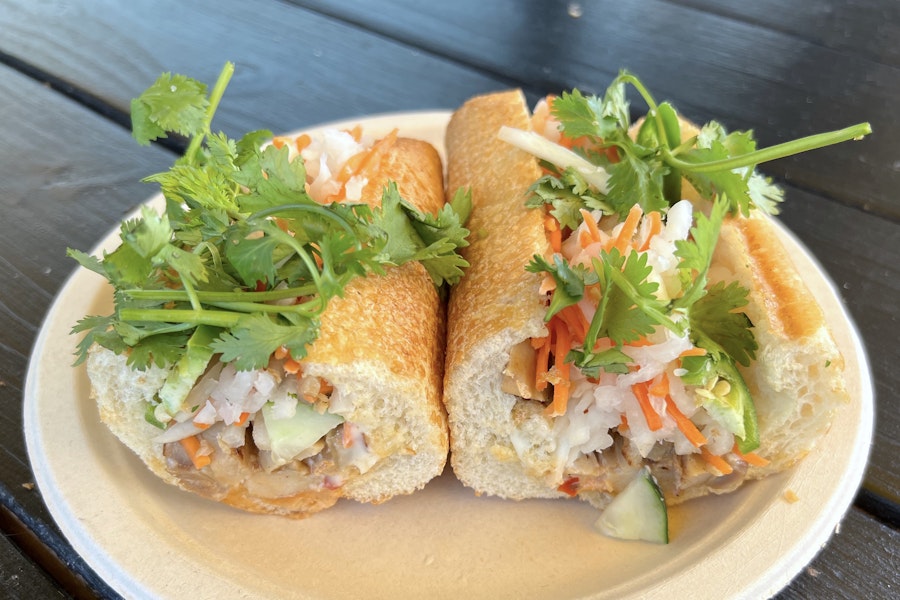 All banh mi come with cucumber, jalapeno, mayo (or vegan mayo if specified), house-made pickled daikon, carrots and cilantro on baguette