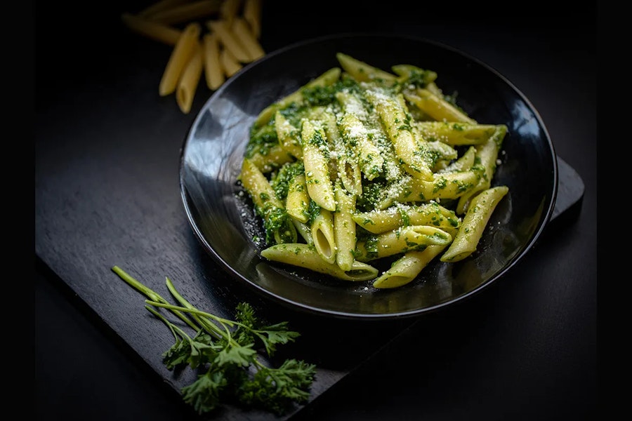 Nut-free pesto, basil, parmesan cheese, olive oil, garlic