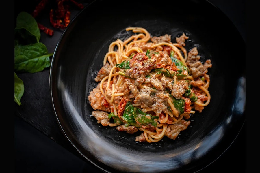 Sweet italian sausage, sundried tomatoes, spinach, spicy rosa cream sauce