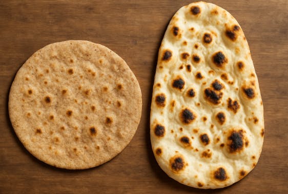 “Roti is made with whole wheat, while naan uses white flour and sometimes eggs, which makes it softer and chewier. If you are health-conscious, roti is the better choice. That said, nothing beats a fresh naan straight from the tandoor.”