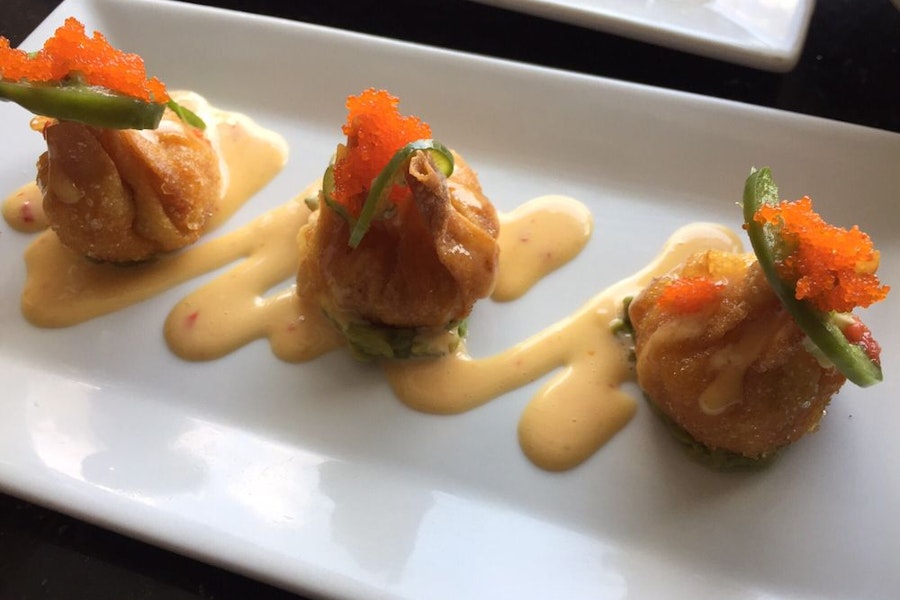 Taiwanese buns with cilantro, crushed peanuts, and organic tofu with sweet spicy sauce