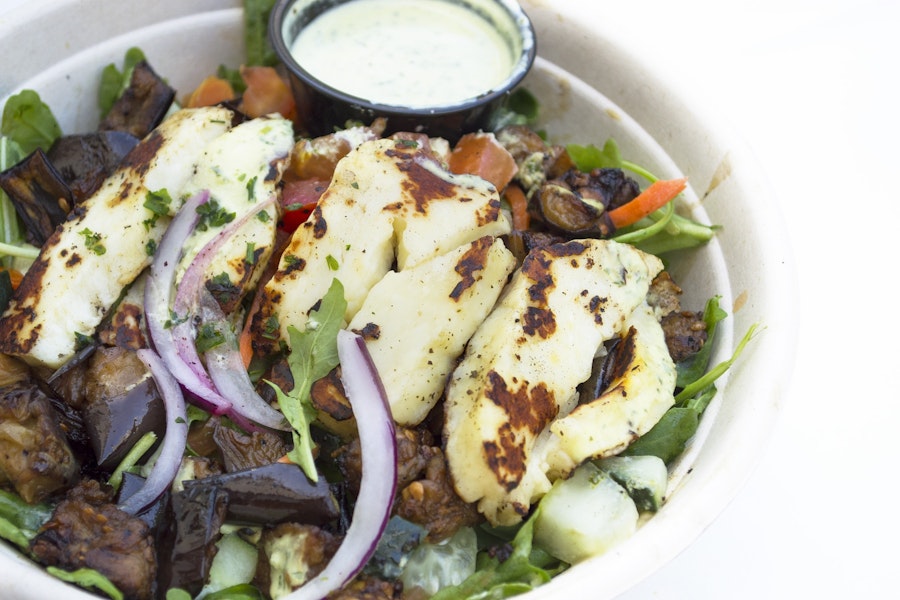 With falafels, grilled veggies & fried cauliflower