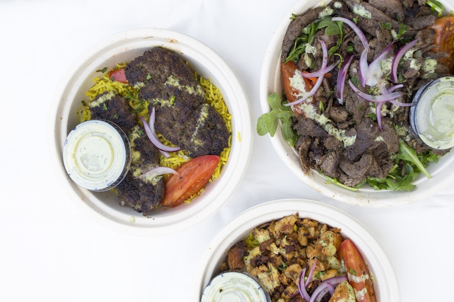 Falafel Boy's shawarma best! Delicious Mediterranean eats packed in easy individual bowls so everyone gets exactly what they want--no mess!
