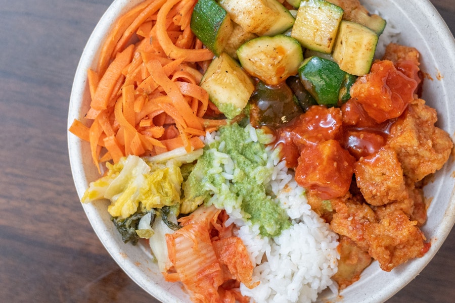 A family style buffet with all the fixins' you need to assemble your own Fresh Kimchi Bowls!