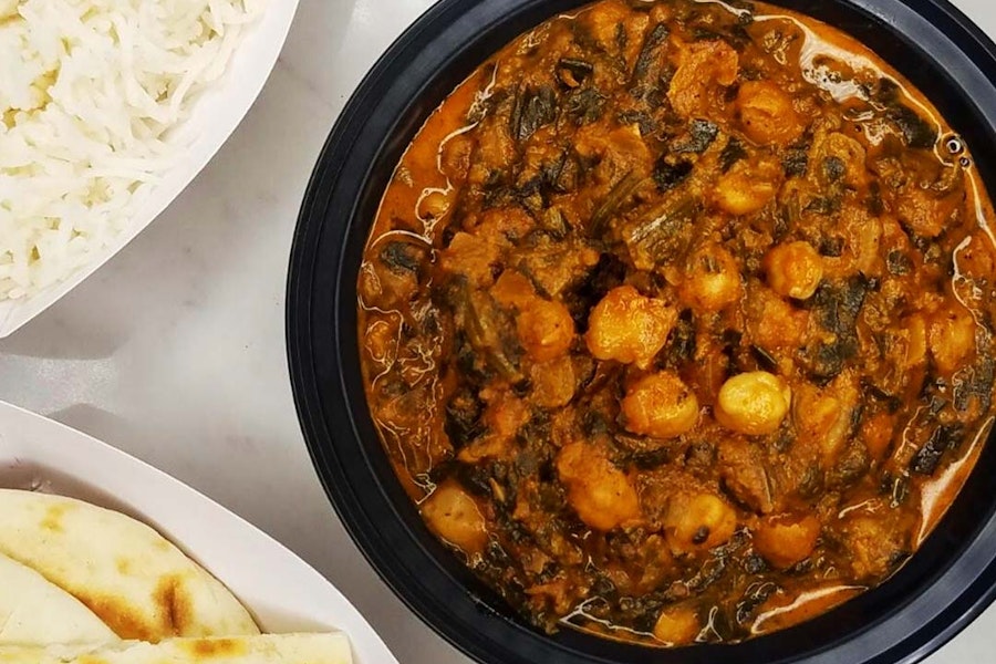 Chopped spinach in a curried chickpea sauce with cream
