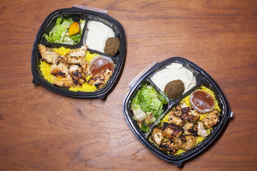 White rice & brown lentils with sweet sautéed onion. Served with rice, hummus salad, pita (pita is not gluten-free),, and sauce on the side