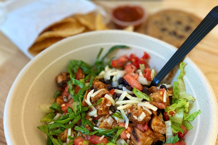 Each box comes with your choice of entree, chips, salsa, and a cookie