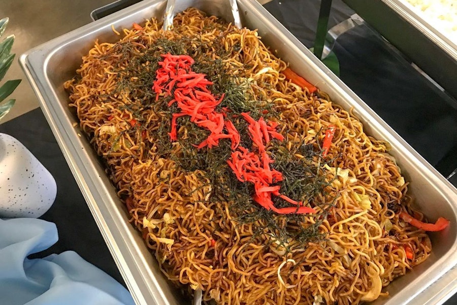 A delighting island vibe buffet! You can't go wrong with rice or yakisoba when you combine them with classics like Huli Huli Chicken or Kalua Pork! Eat up and enjoy!