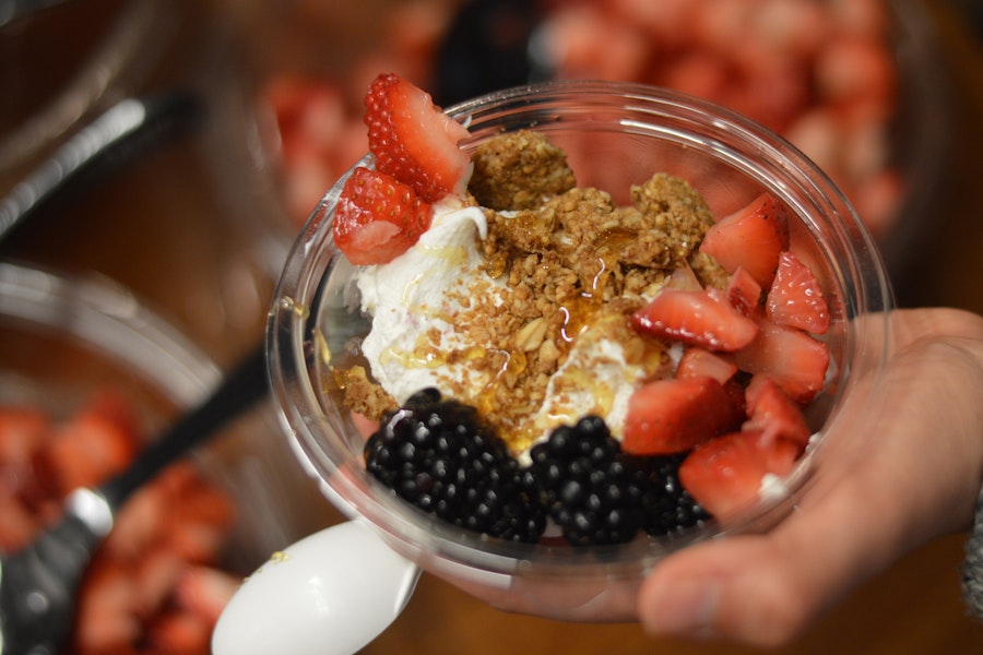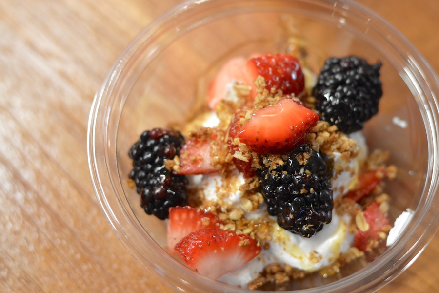 Each parfait comes with two scoops of Pi bakeries fresh Greek yogurt and your choice of toppings