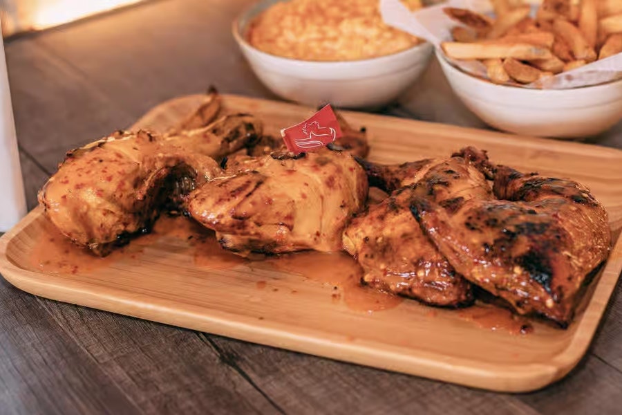Peri chicken, lettuce, red onion, peri bbq sauce, perimayo on ciabatta