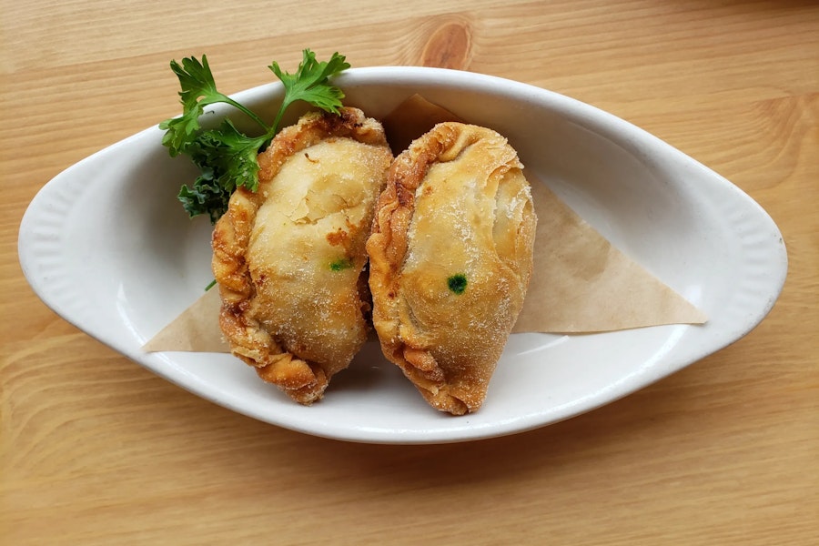 Crab rangoon, togarashi chicken tenders, egg rolls, samosas, pot stickers, shrimp shumai
