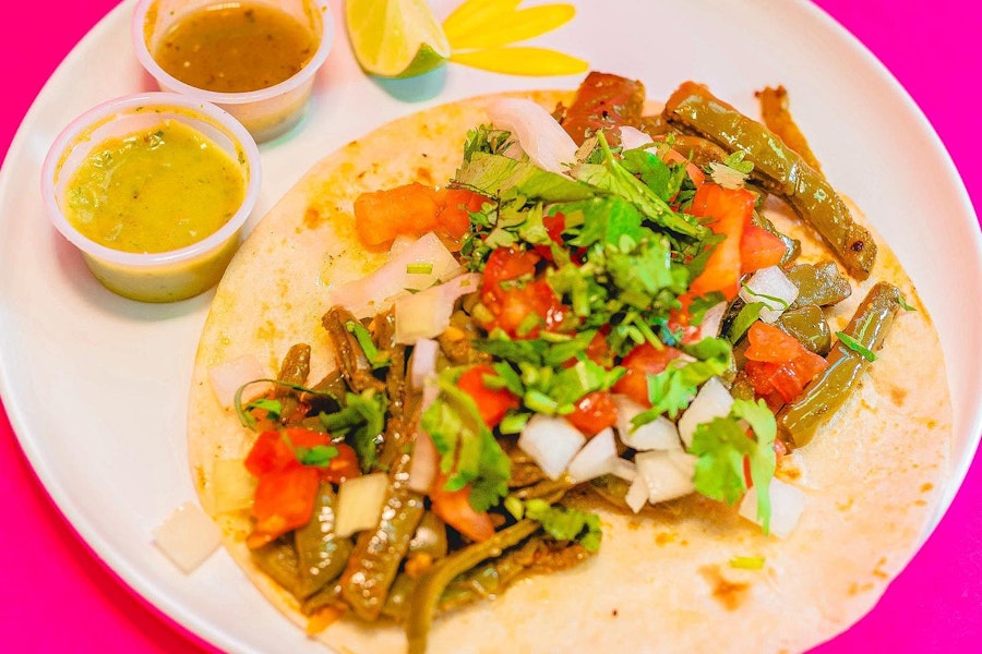 Includes two tacos made with your choice of protein Served with red rice & refried pinto beans, jalapeno salsa and limes on the side