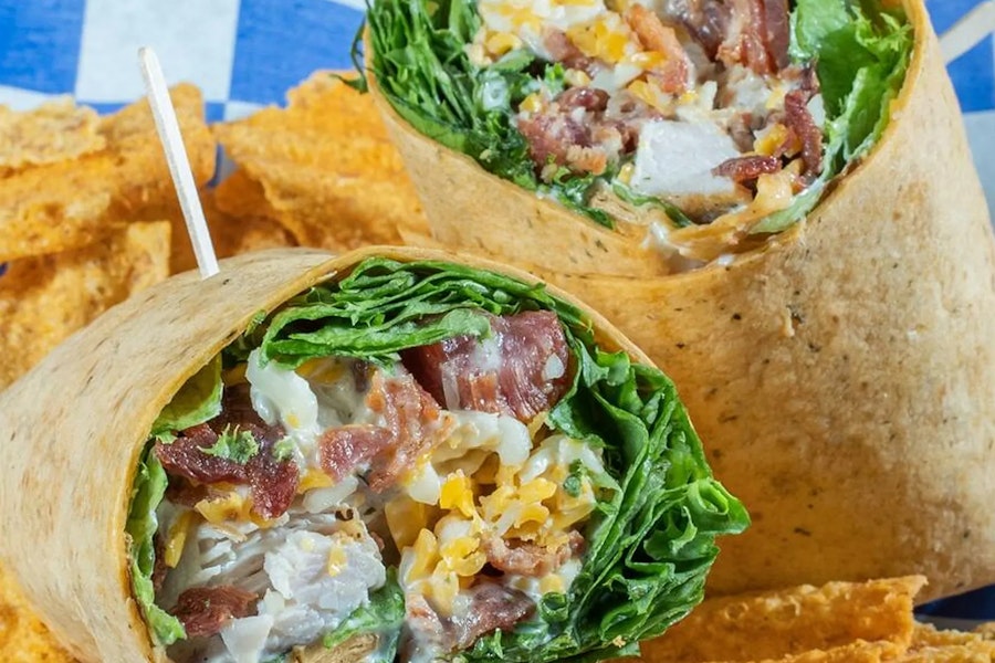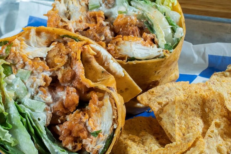 Grilled chicken, mozzarella cheese, field greens, tomato, roasted red pepper, and balsamic glaze in a tortilla. Served with chips