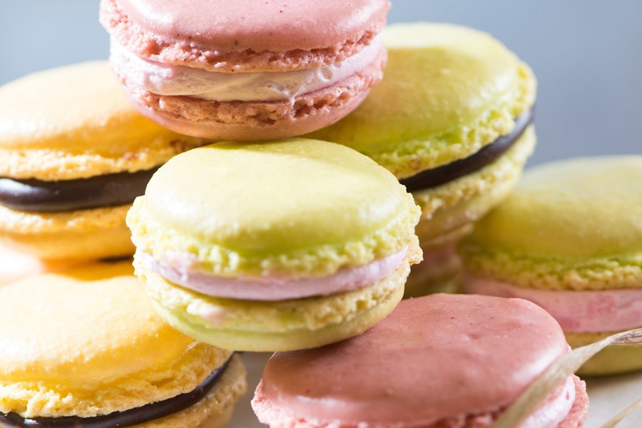 Unique and colorful, these delicate almond meringue cookies are sandwiched together with a rich and smooth filling! Just beautiful!