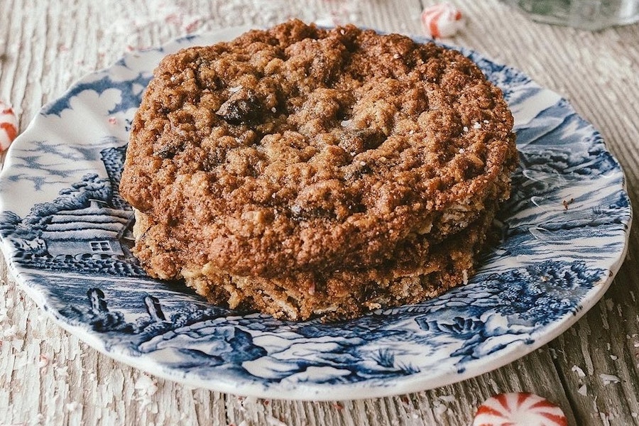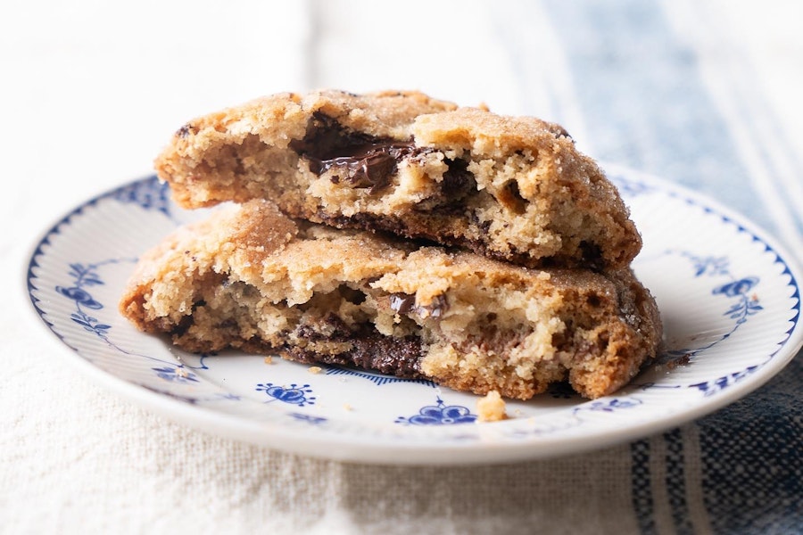 Our fan-favorite cookie without the nuts. Dark chocolate wafers, a hint of fleur de sel, and a cakey center