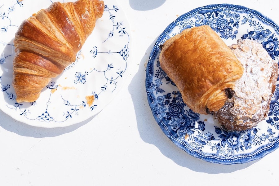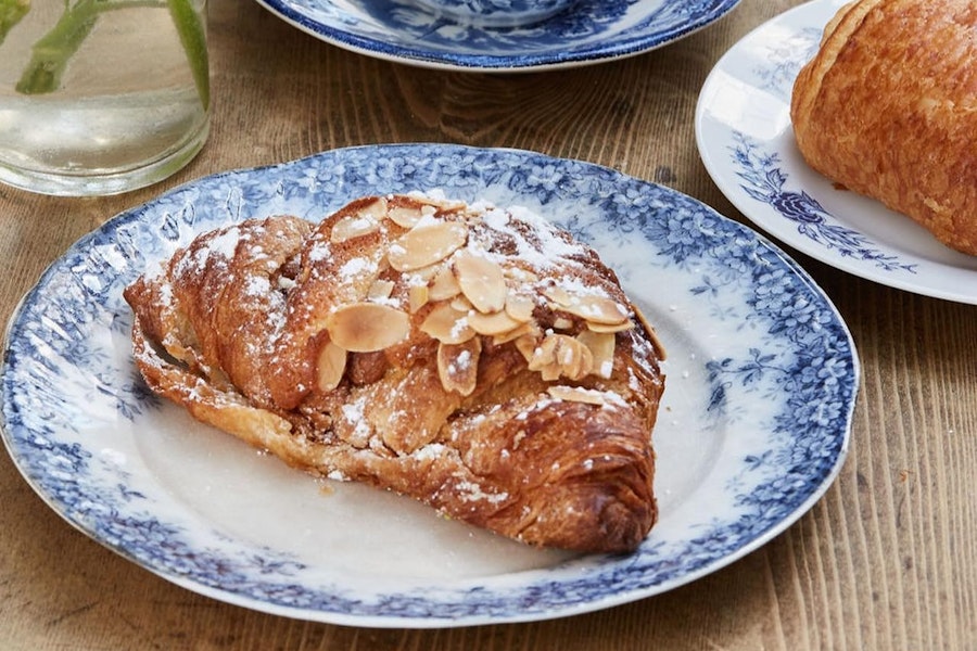Classic croissant filled with frangipane & dark chocolate, topped with sliced almonds & powdered sugar