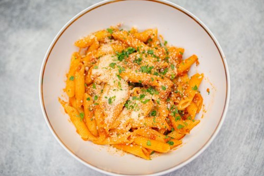 Cavatelli pasta, tossed in a creamy vodka sauce, topped with parmesan