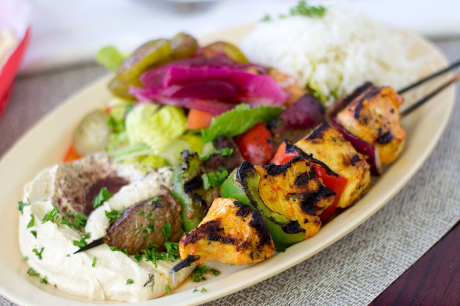 Tender marinated mixture of beef & lamb charbroiled on a skewer