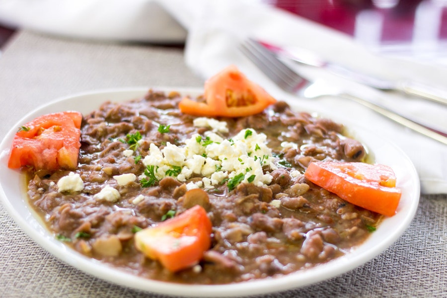 Lettuce, tomatoes, cucumbers, mint, and radish, fried pita bread dressed with fresh lemon juice and olive oil