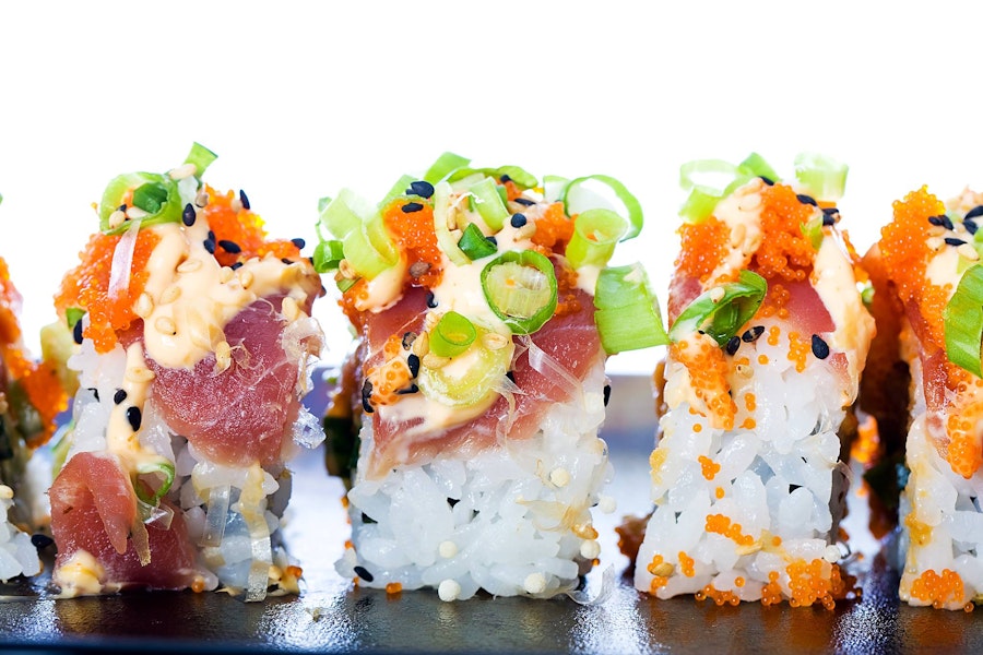 Includes aburi tuna carpaccio, edamame, spicy tuna crispy rice, fireworks roll, crazy tuna roll, spicy tuna roll, tuna avocado roll, tuna nigiri, white tuna nigiri, tuna sashimi, and white tuna sashimi