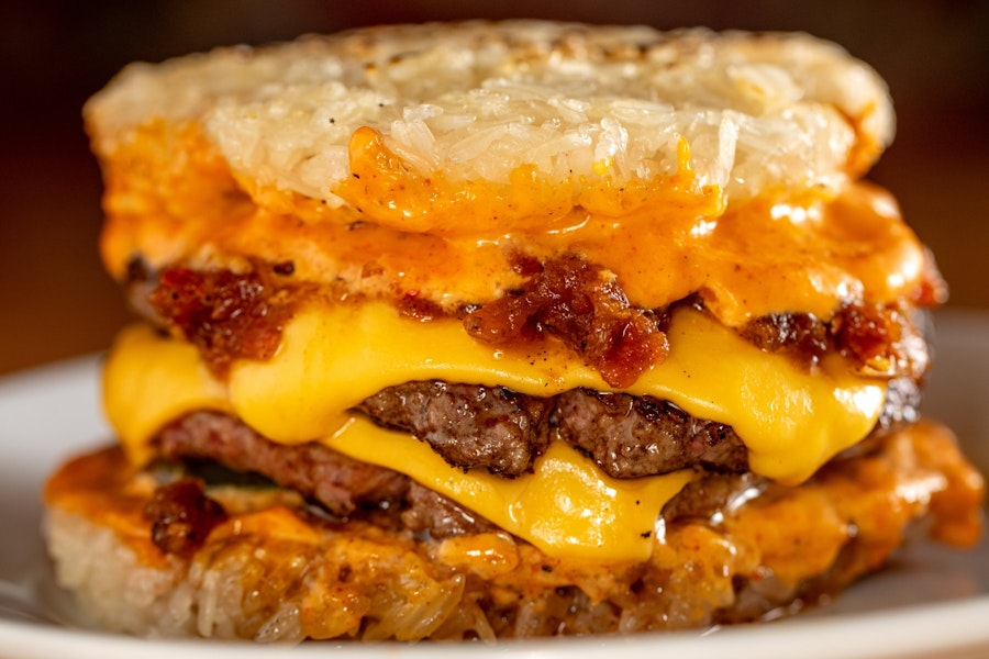 Juicy double beef patty, cheese, jalapeño, onions, topped with chopped beef, bird chili, garlic, thai hot basil, zaab sauce