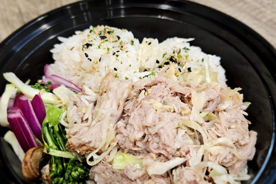Marinated beef chuck tender. Served with kimchi and micro greens