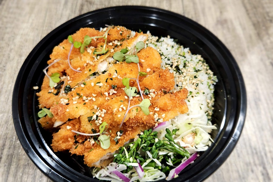 Chicken thigh hand-breaded with flour, egg wash, panko & deep-fried. Served with balsamic katsu sauce