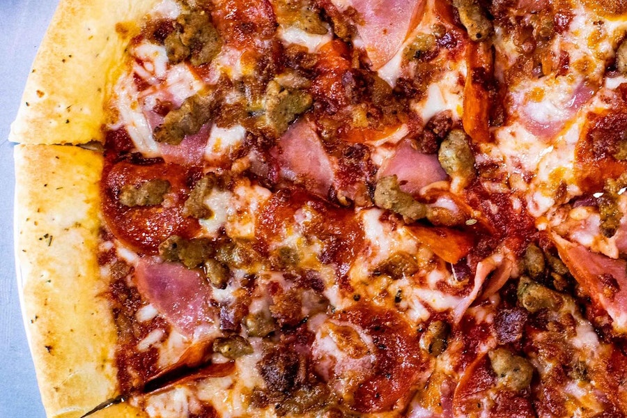 Smoked ham, pepperoni, bacon, sausage & smoked provolone cheese
