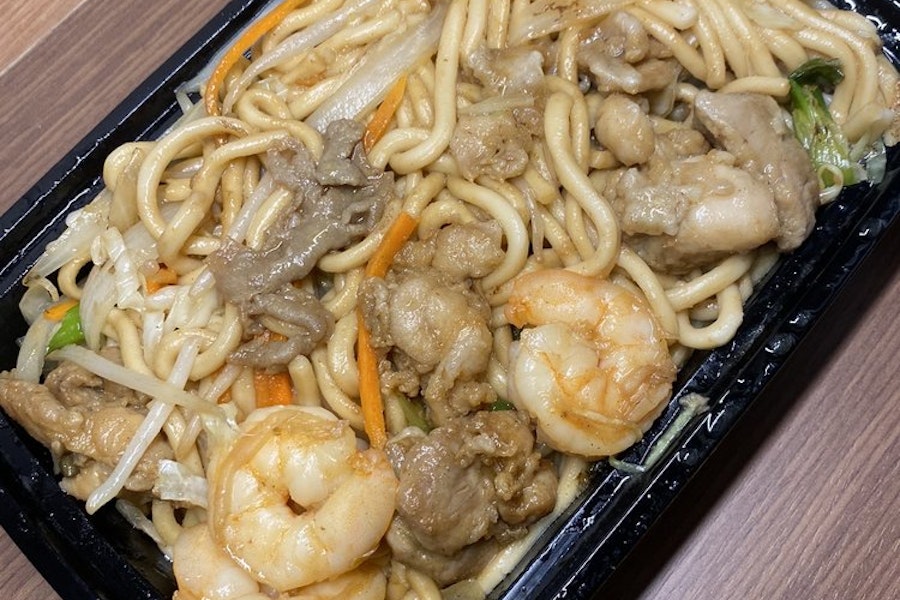 Stir-fried with chicken, beef (marinated with soy sauce), pork, shrimp, vegetables, and egg