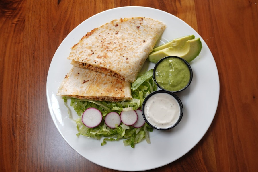 Flour tortilla with choice of protein and cotija cheese, served with sour cream and pico de gallo
