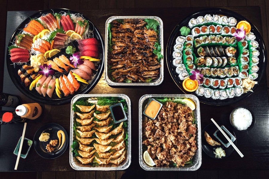 Includes 10 salmon pieces, 10 tuna pieces, 10 hamachi pieces, 10 albacore pieces, and 20 chef’s choice pieces