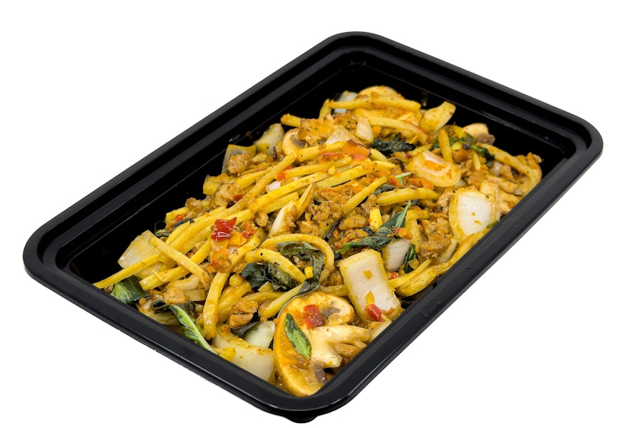 With fried tofu, green beans, bamboo shoots, onions, mushrooms, stir-fried in our vegan & gluten-free house brown sauce and bell pepper & garlic puree. Served with jasmine rice