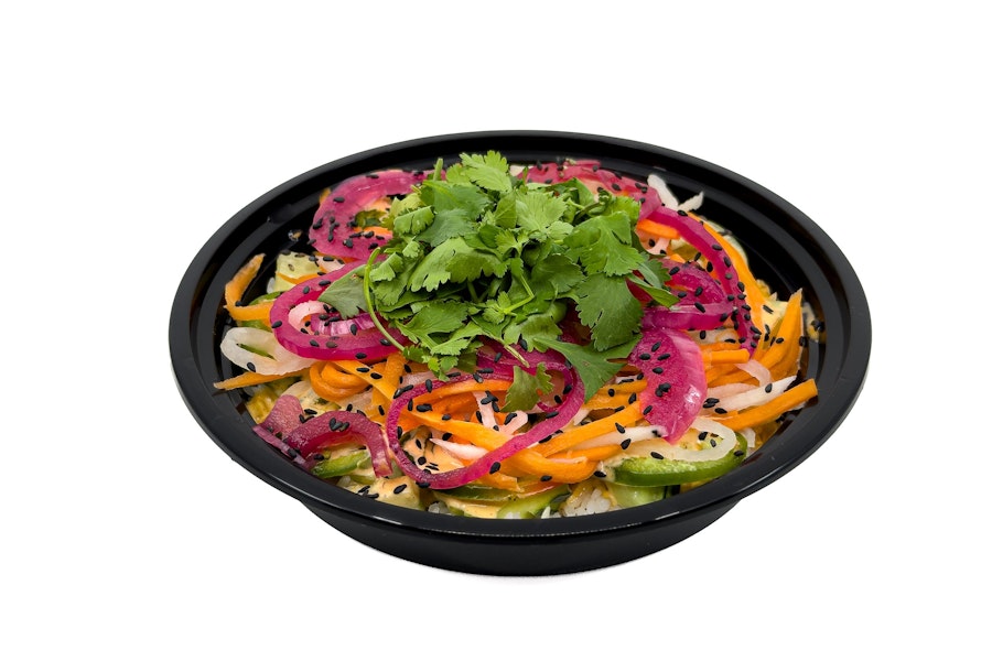 Per piece. Shredded cabbage and carrots in an umami-garlic brine, wrapped in a fried crispy wrapper