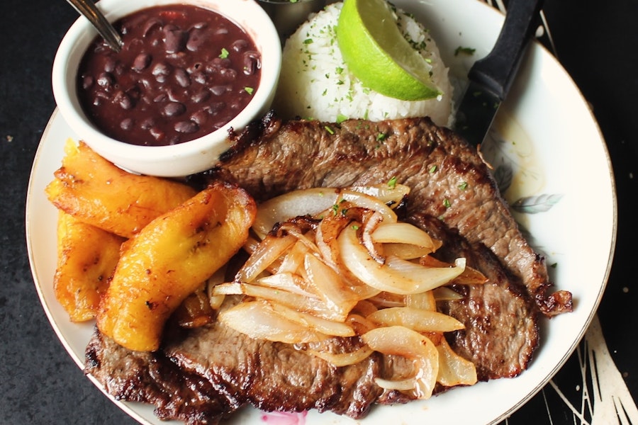 Seasoned ground beef, peppers, onions, capers & sweet plantains