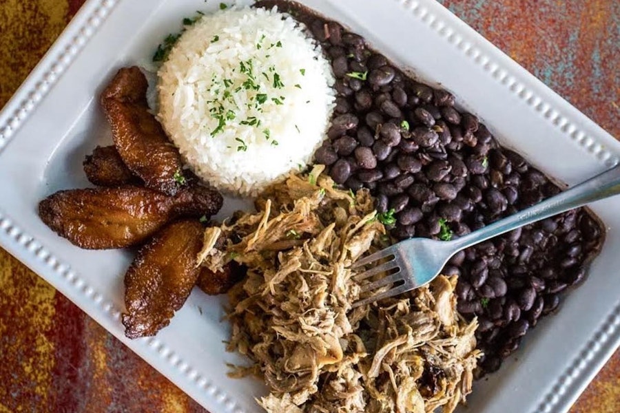 Slow-roasted pork, sautéed onions, sweet plantains, with veggie-citrus & slaw and mojo aioli