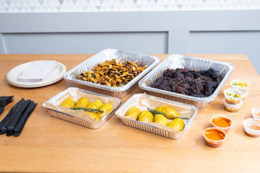 Filled with black beans and corn. Served with our homemade hot sauces: peri peri, harissa, and smoky habenero