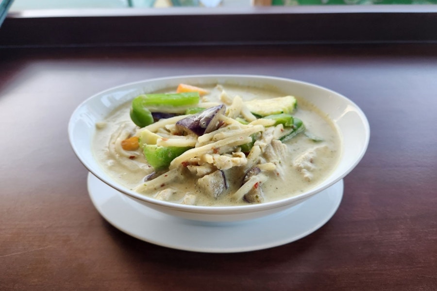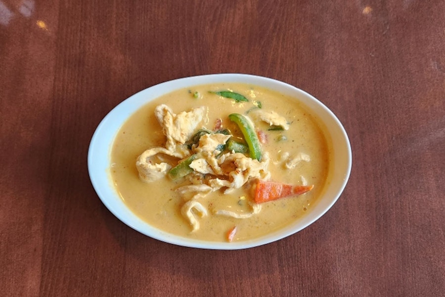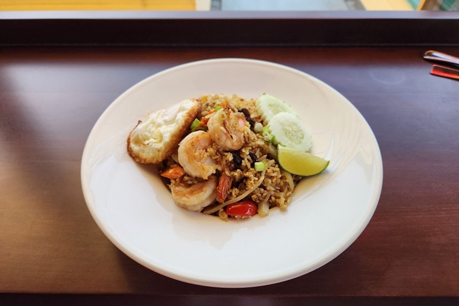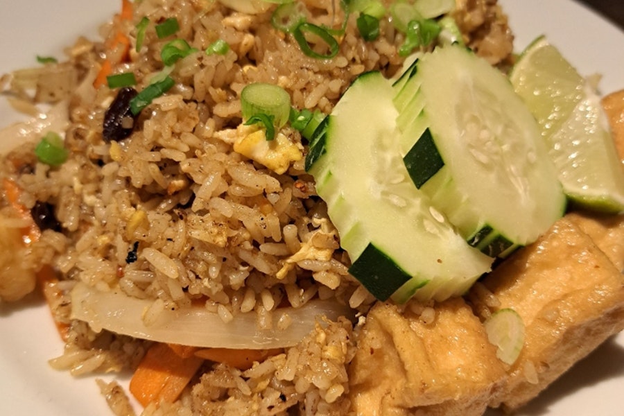 Your choice of protein with rice, egg, raisin, white onion, tomato, pineapple, cashew nut, yellow curry powder