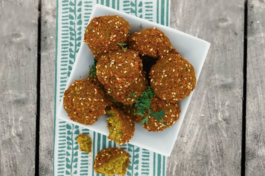 Fried in non-gmo rice bran oil for that quality & healthier taste. Served with tahini sauce (contains sesame) and pita bread (not gluten-free) on the side