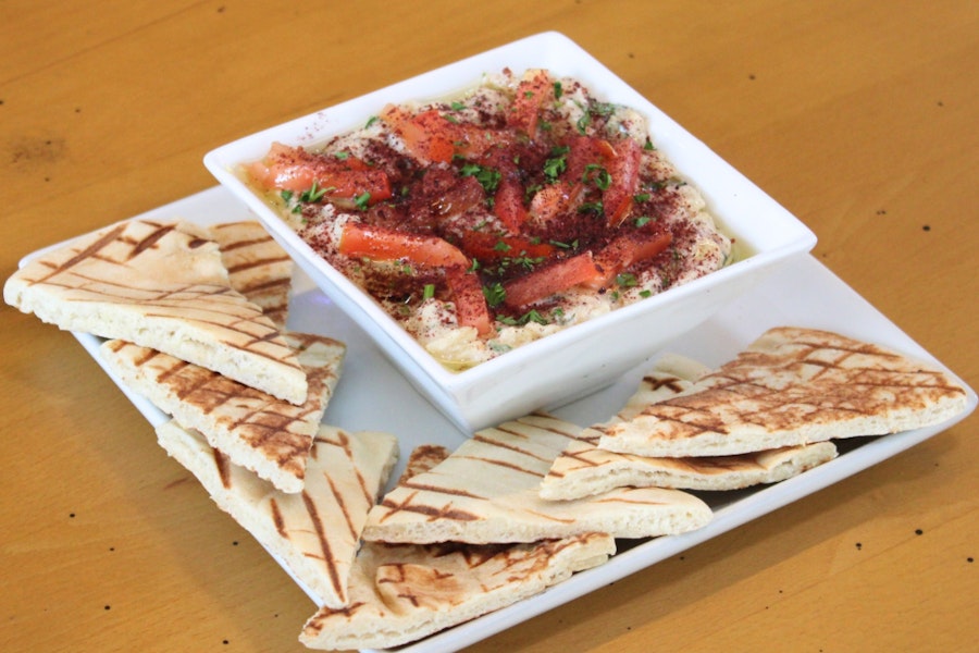 All appetizers are served with pita bread (not gluten-free) on the side, except for dolmas