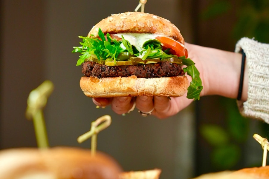 Mushroom, smoked tofu, goat cheese and lentil patty, whole wheat bun, lemon & boursin aioli, arugula, tomato, pickle, toasted whole wheat bun. Served with chips
