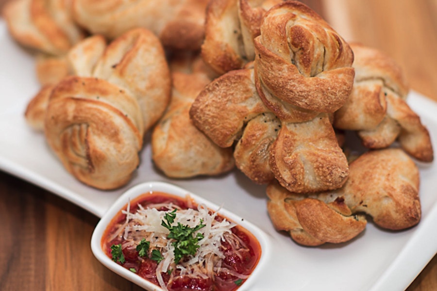 Strips of our famous pizza dough tied up in little knots, stuffed with fresh garlic, olive oil & baked to perfection. Served with a side of marinara sauce