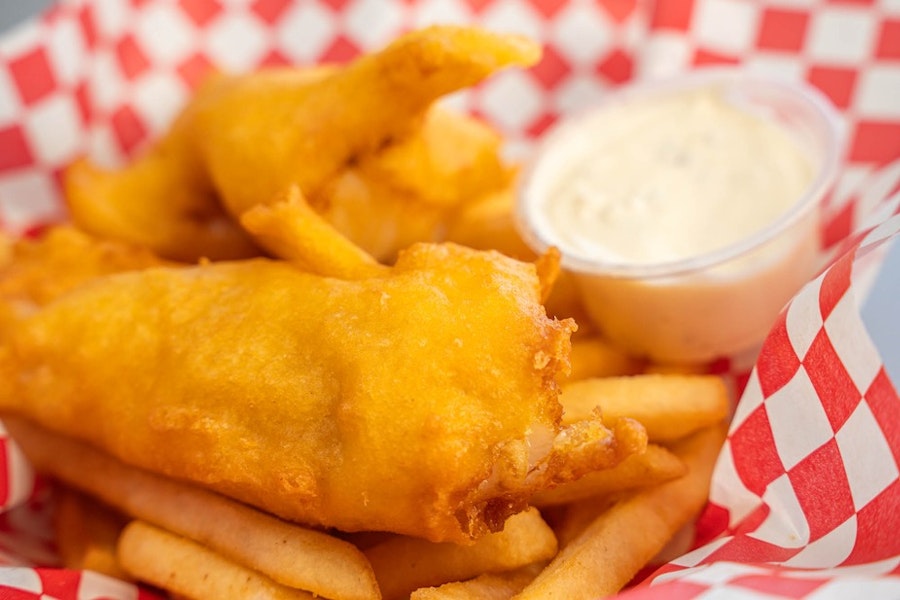 Two pieces of alaskan cod, batter-dipped and fried. Served with fries