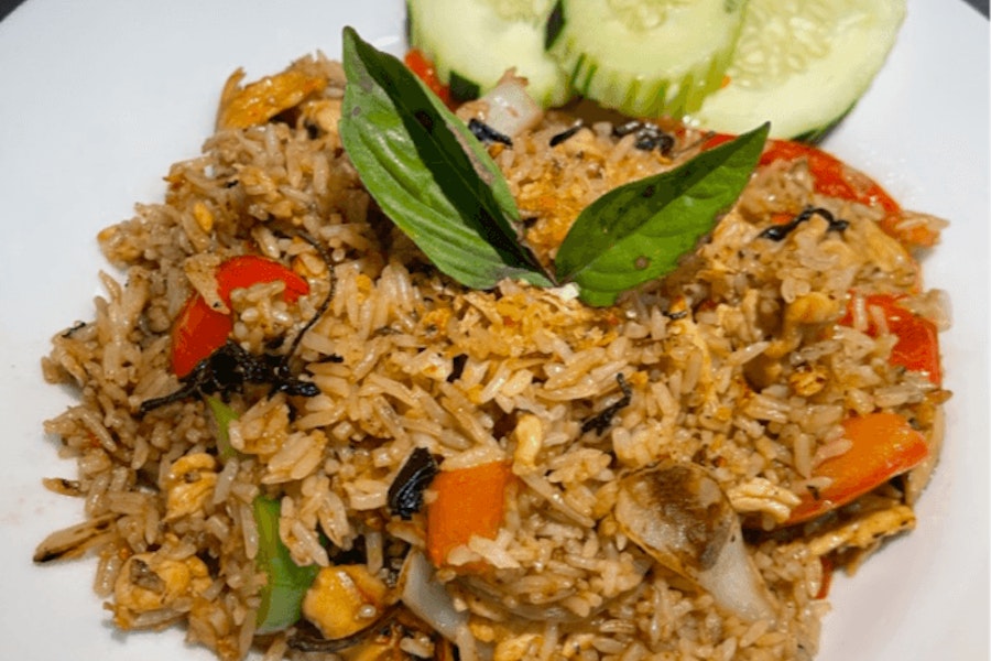 Fried rice with your choice of protein or vegetables, chili, garlic, onions, bell peppers, mushrooms, tomatoes, and basil