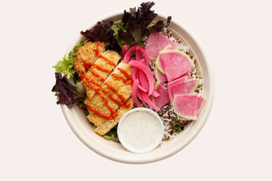 Baked crispy chicken, watermelon radish, napa cabbage, pickled red onion, dash of hot sauce, & a house-made buttermilk ranch dressing