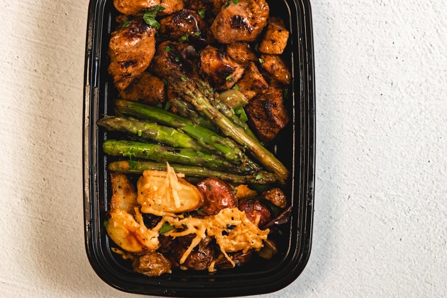 Tender strips of grass-fed beef, broccoli, garlic, ginger, coconut aminos and fish sauce with white rice