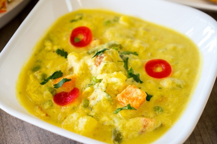 Vegetables simmered in black pepper sauce, coconut and mild spices