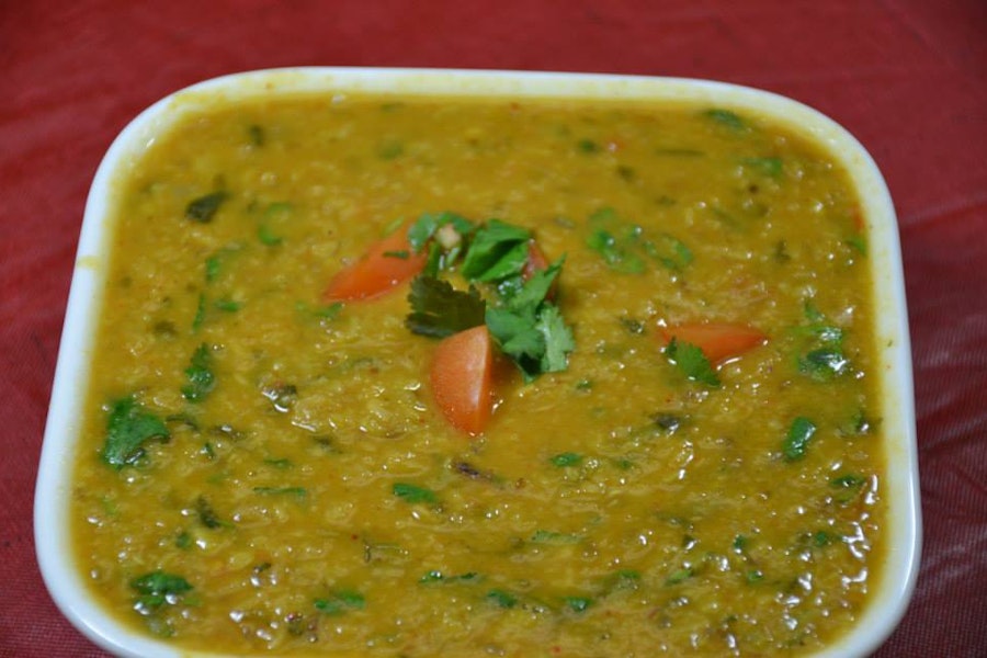 Yellow lentils cooked with indian spices & finished with an aromatic tarka of onions, tomatoes, cumin & coriander