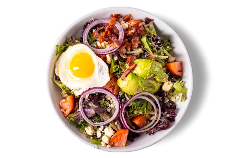 Aged blue cheese, uncured bacon, organic sunny egg, avocado, mixed greens, roma tomato, raw red onion, buttermilk ranch