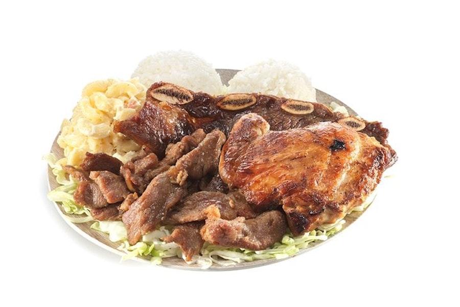 Bbq chicken, bbq beef and kalbi short ribs. A meat lover's favorite