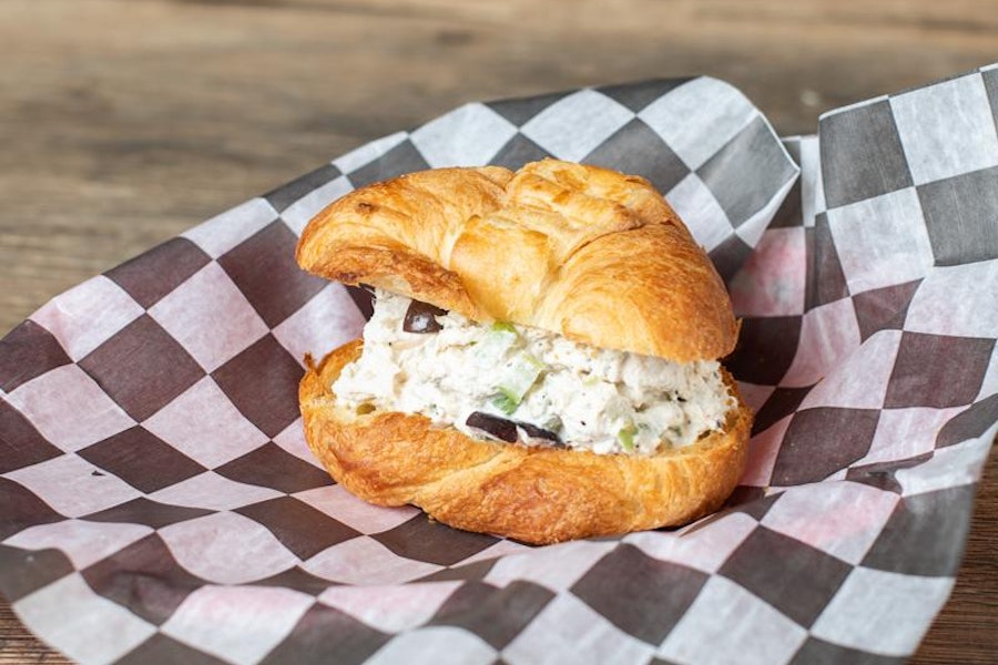 Homemade chicken salad on a croissant
